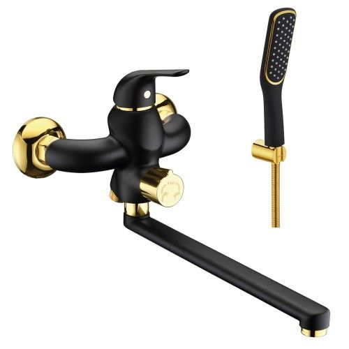 LM5451BG Смеситель LEMARK универсальный с плоским поворотным изливом "SWAN", черный/золото